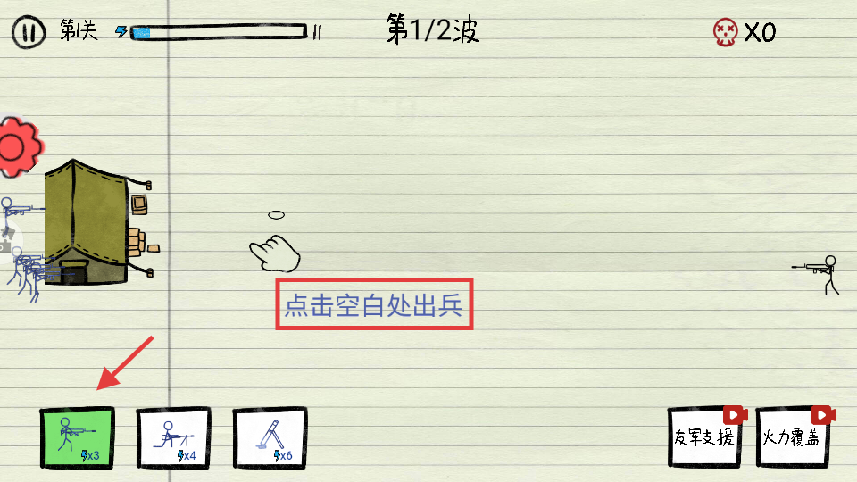 2、战斗时点击【空白处】出兵,左下角绿色【x3】持枪兵种优先部署,快速形成火力压制。