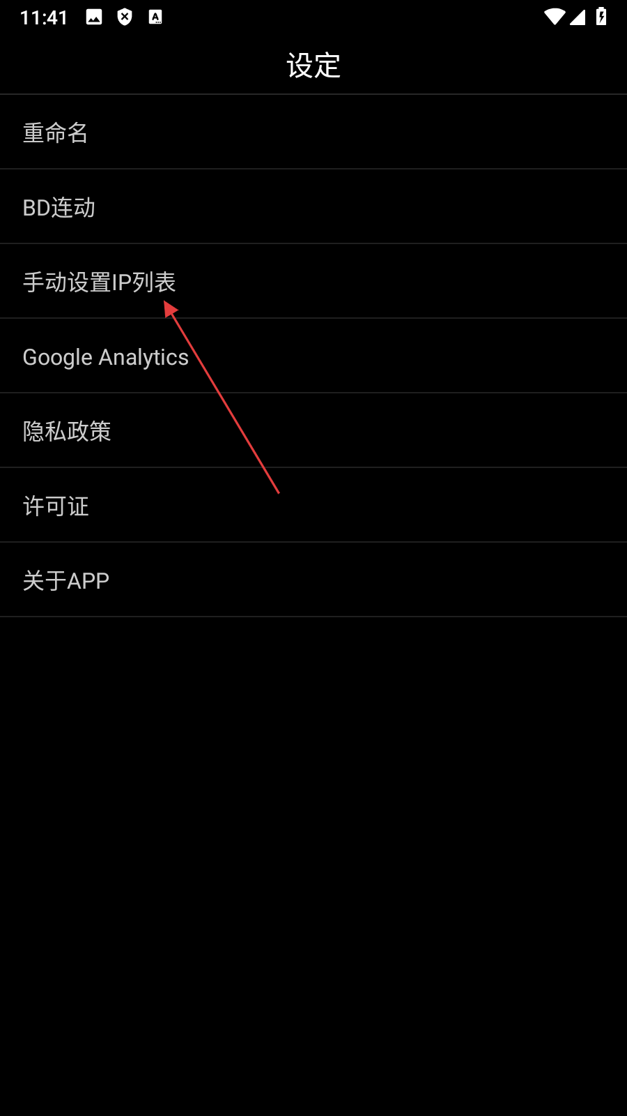 2、在设定页面,点击【手动设置IP列表】,进入IP地址设置界面。