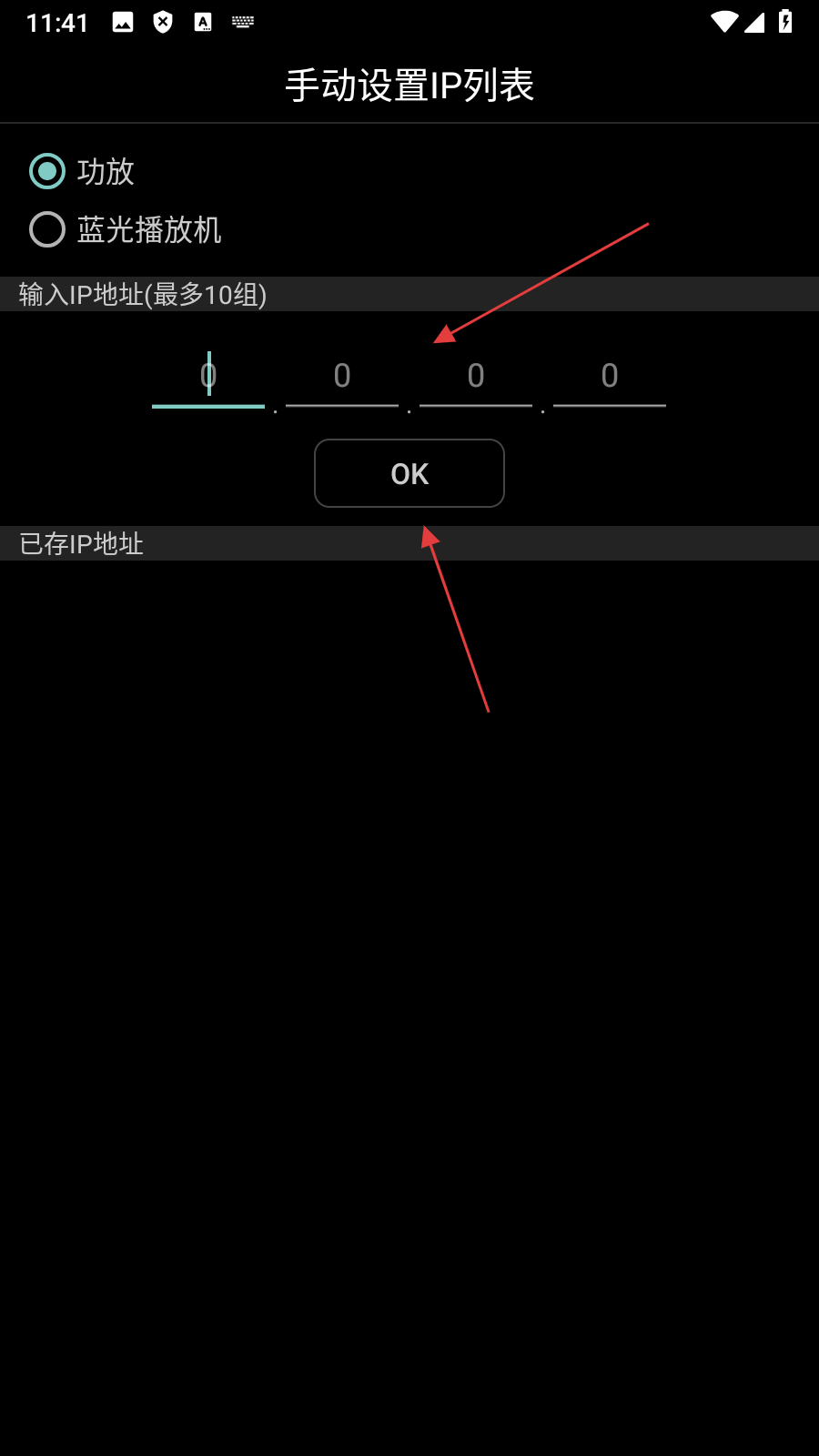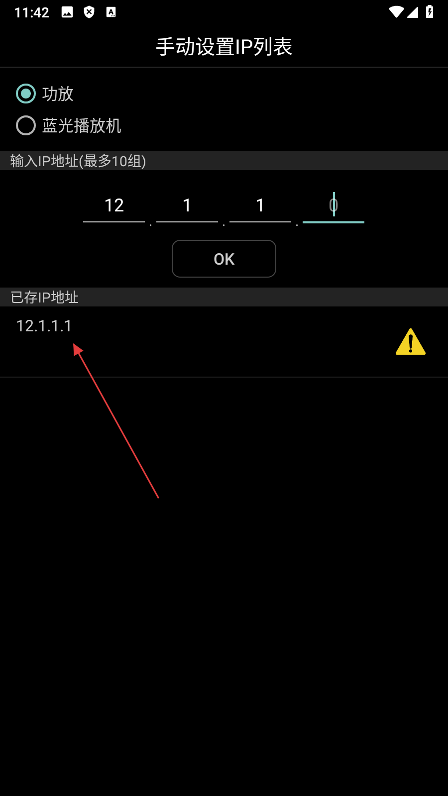 3、在手动设置IP列表界面,输入要【设置的IP地址】后点击【OK】,进行地址确认。