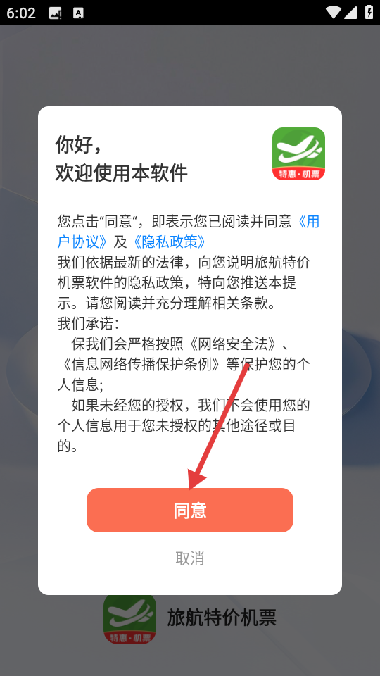 1、首次使用需阅读《用户协议》及《隐私政策》,若同意,点击【同意】。