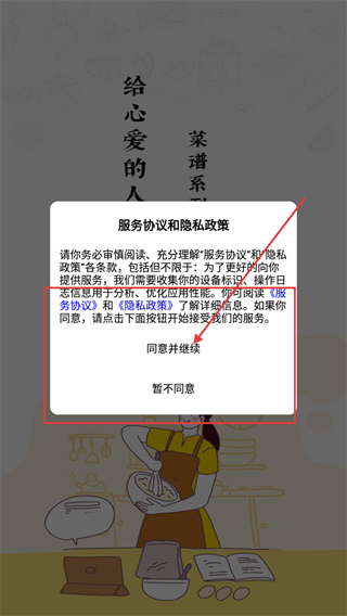 1、打开软件后,会弹出【服务协议和隐私政策】弹窗,仔细阅读后点击【同意并继续】,即可进入软件。