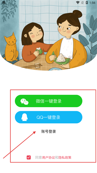 4、进入登录页面后,可选择【微信一键登录】【QQ一键登录】或【账号登录】,勾选同意用户协议和隐私政策后完成登录。