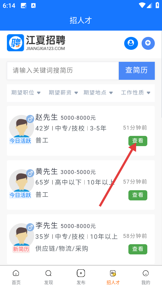 3、进入【招人才】页面,可选择感兴趣的求职者简历。