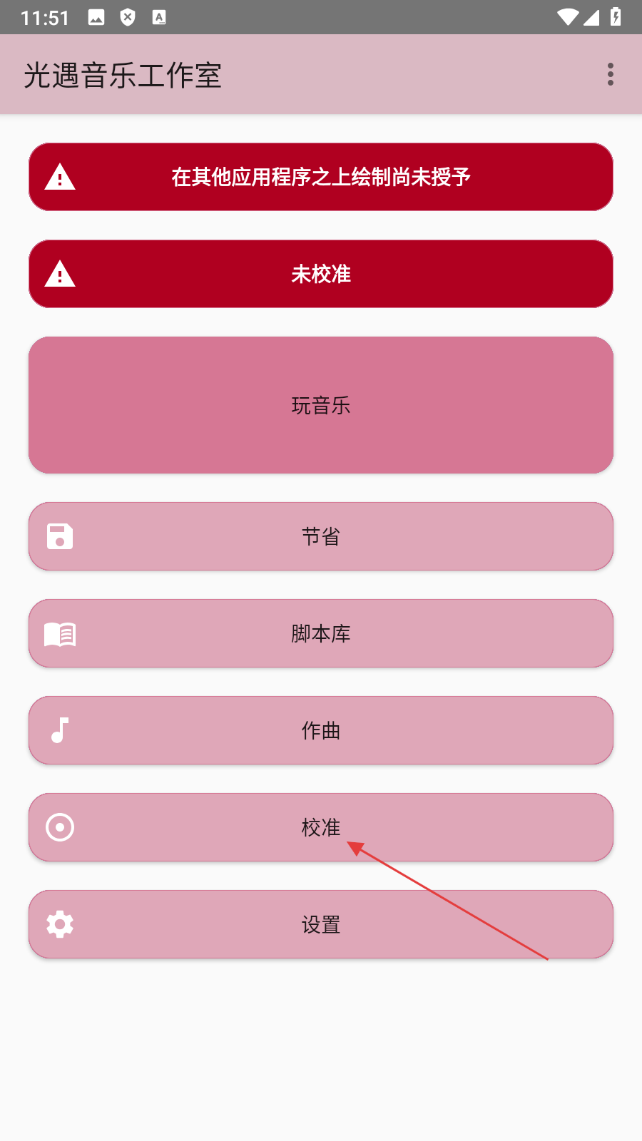 1、在光遇音乐工作室界面,点击【校准】,进入校准设定页面。