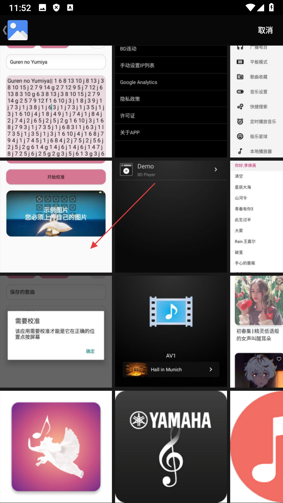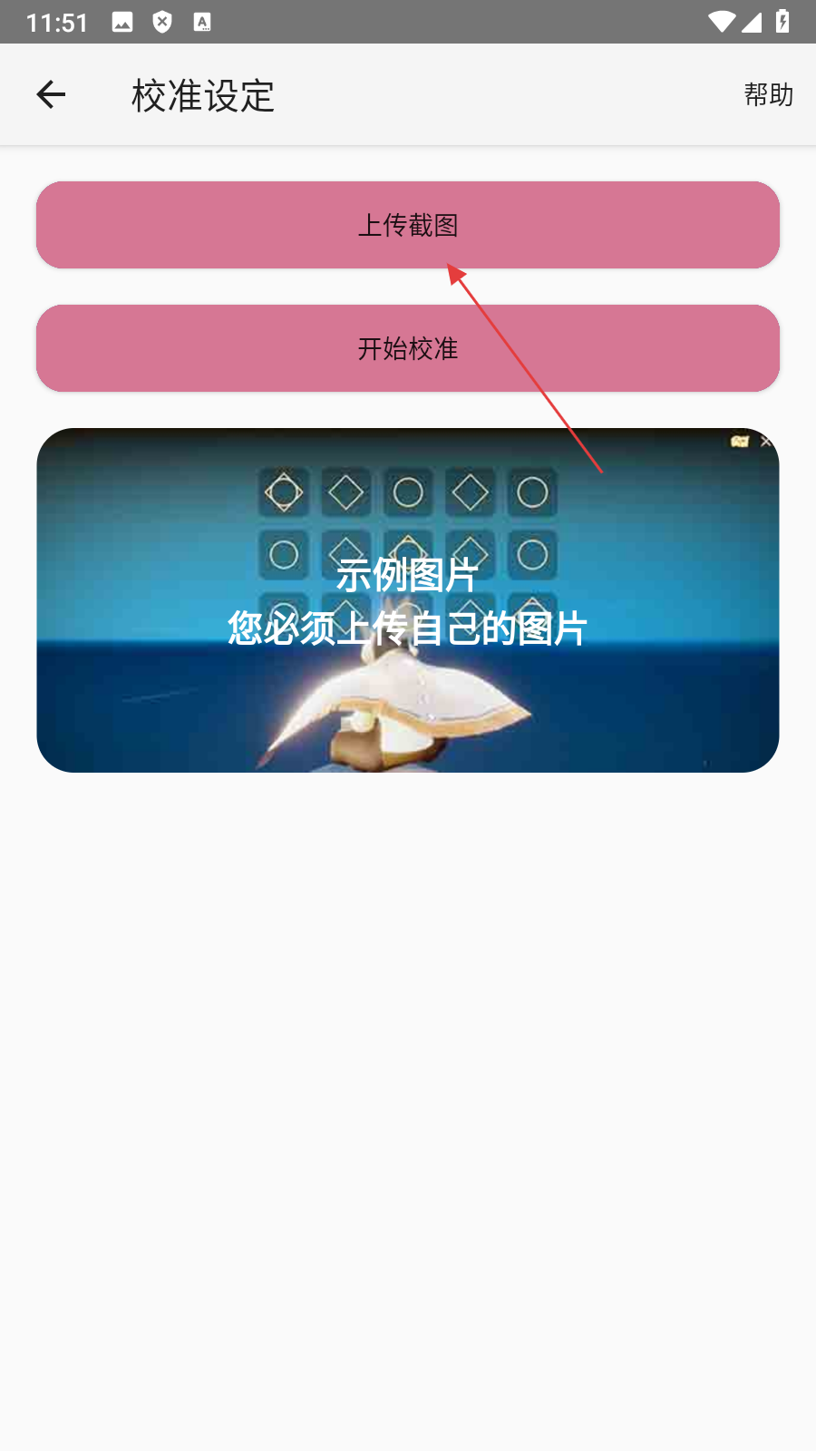 2、在校准设定页面,点击【上传截图】,进入截图选择界面。
