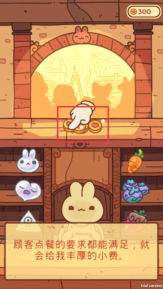 3、劳逸结合设计:营业期间专注糕点制作,休息时间畅玩兔兔梦中小游戏,平衡经营压力与放松乐趣。