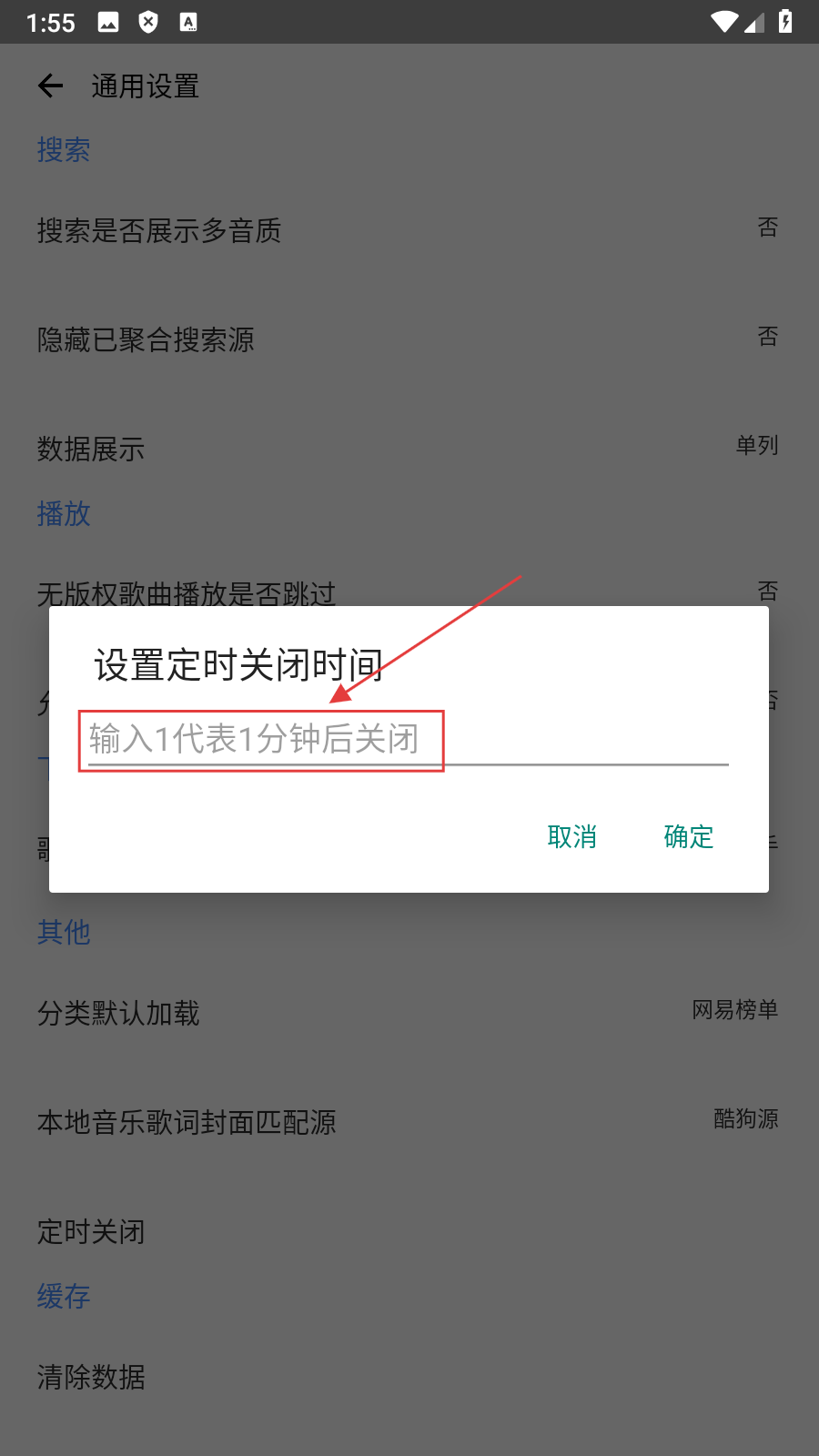 3、在设置定时关闭时间的输入框中,输入【代表分钟数的数字】。