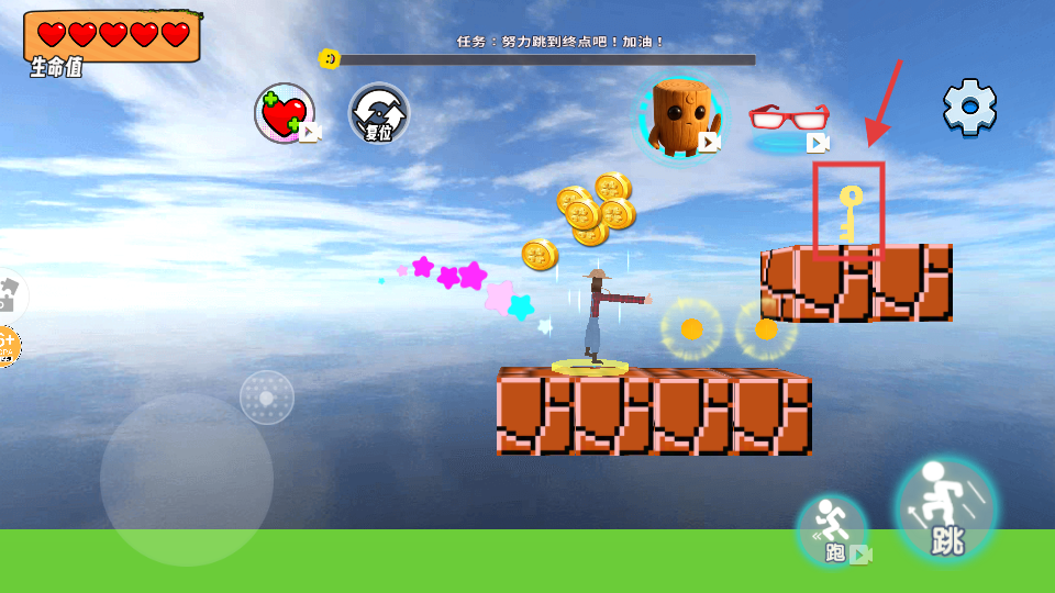 4、优先收集【钥匙】,兼顾【金币】获取,跳跃至钥匙平台完成收集目标。