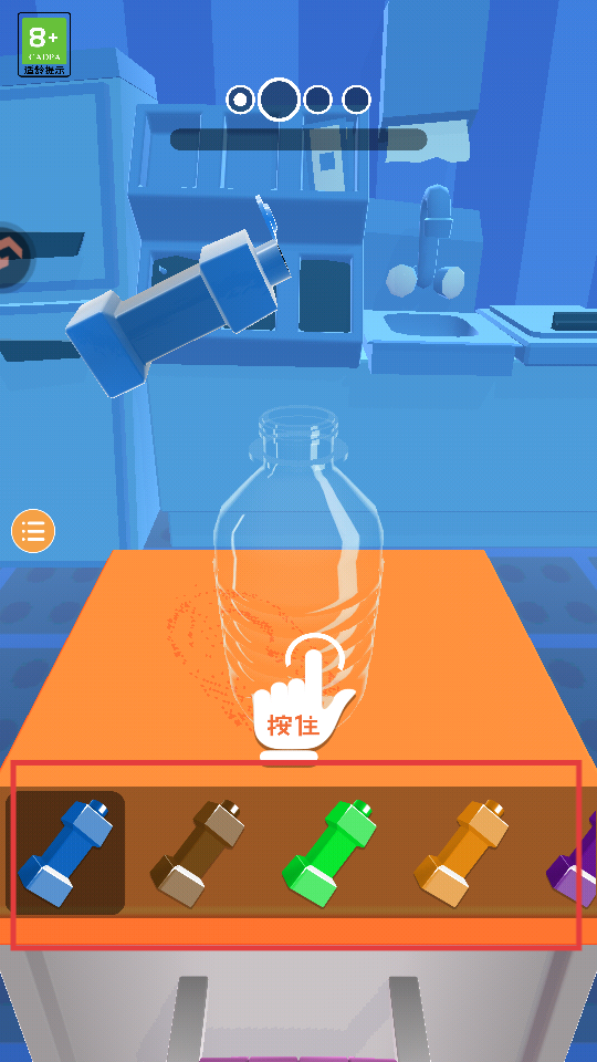 2、按住瓶子,使用下方的工具往瓶子里添加材料。