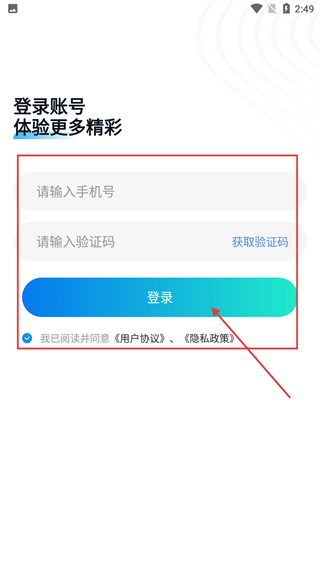 1、先在【请输入手机号】输入框填写手机号,点击【获取验证码】,勾选协议后点击【登录】。