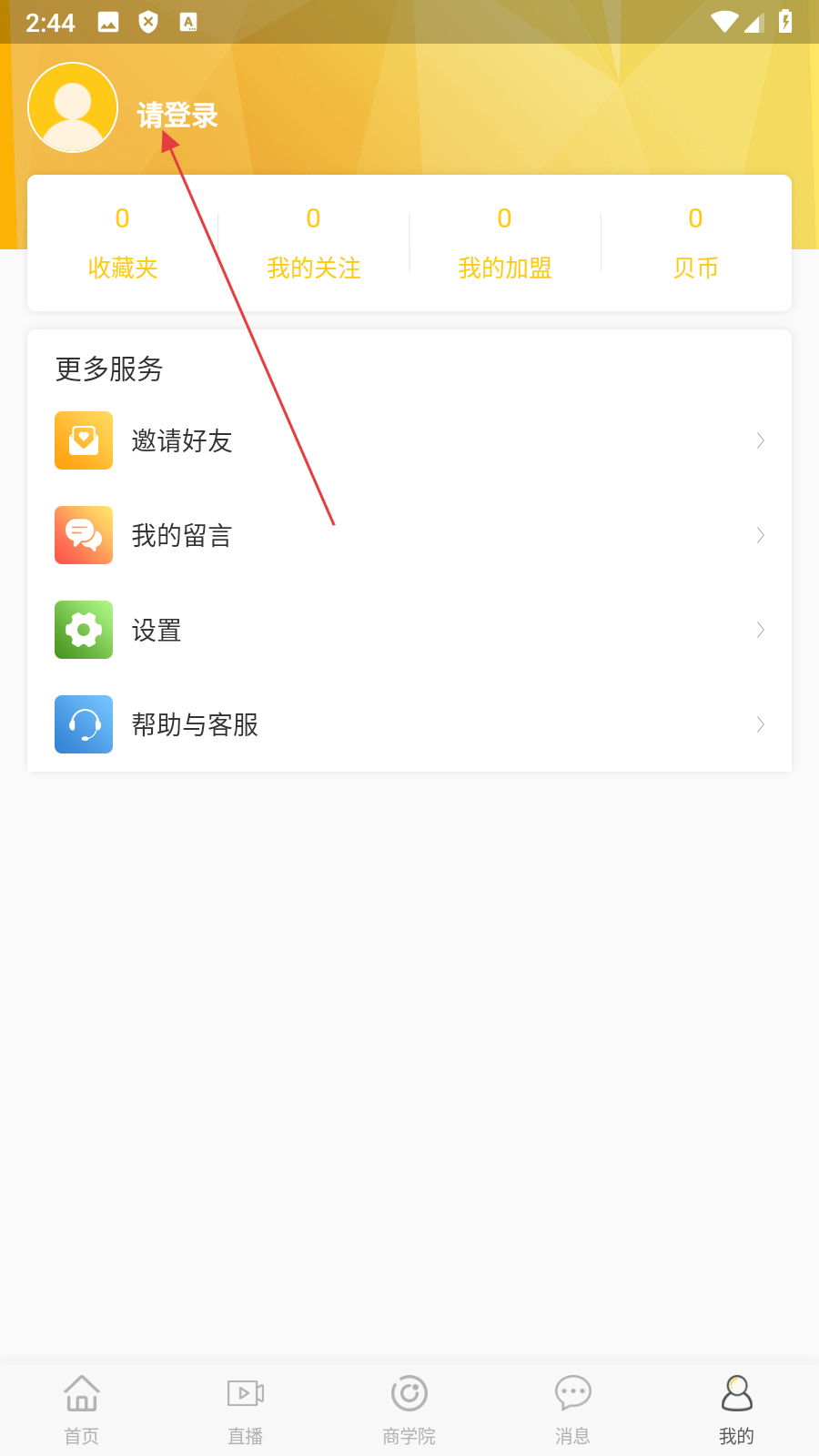 2、在个人中心页面,点击【请登录】,进入登录或注册的选择页面。