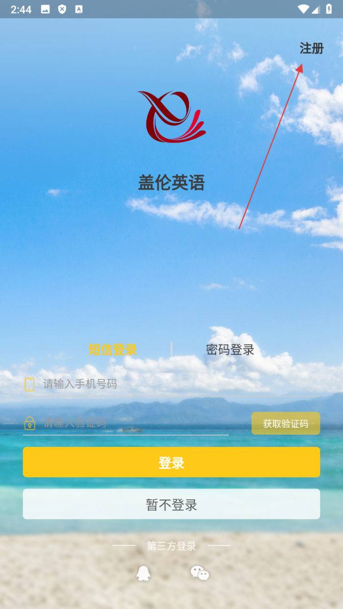 3、在登录选择页面,点击右上角【注册】,进入注册账号的信息填写页面。