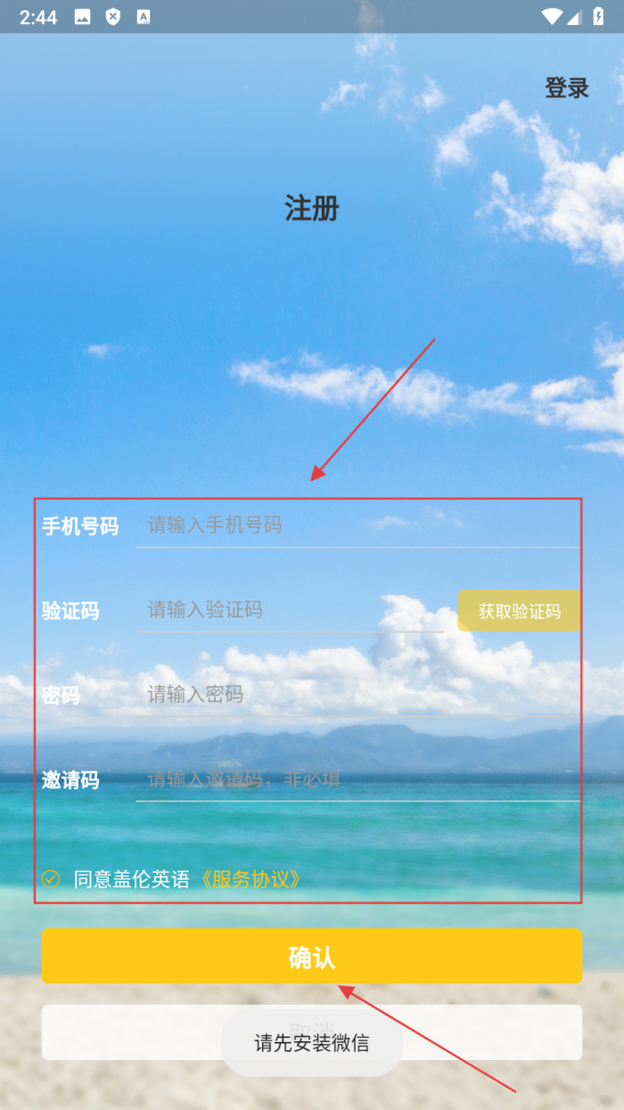 4、依次输入【手机号、验证码、密码】等信息后,点击【确认】,即可完成账号注册操作。