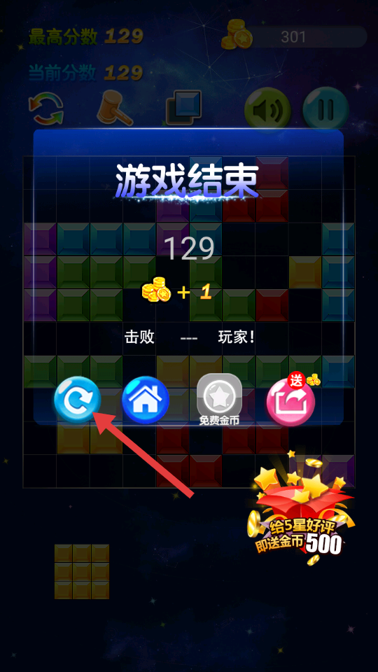4、游戏结束后,点击刷新按钮,重新开始游戏,争取更高分数。