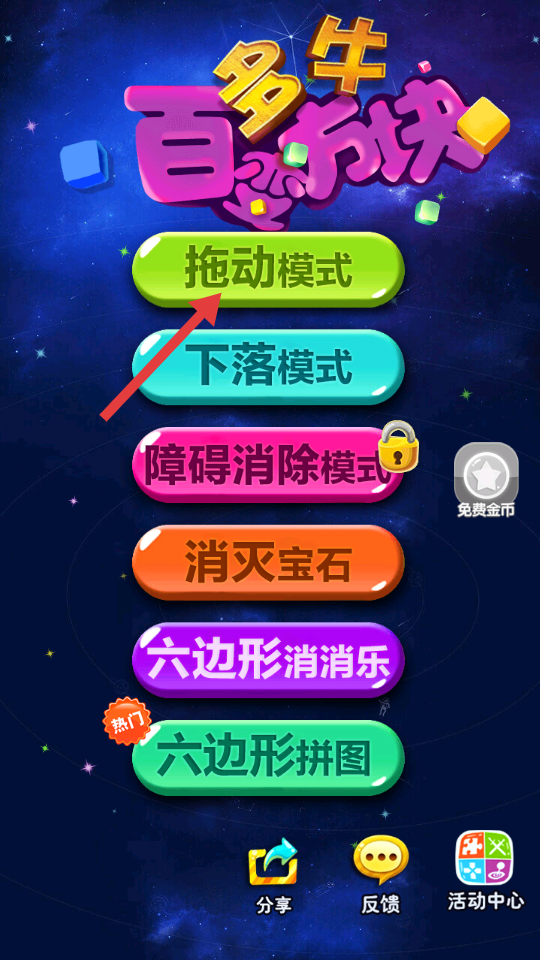 1、选择【拖动模式】,进入游戏,开启方块拼接挑战。