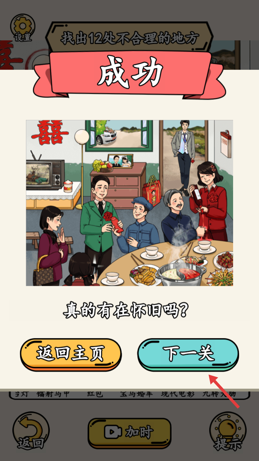 4、成功找出所有不合理处后,点击【下一关】,继续开启新的找茬挑战,看看下一关有啥有趣的场景吧。