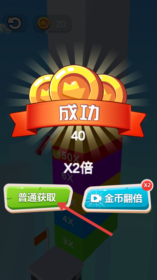 4、成功通关后,可选择【普通获取】,领取相应金币奖励。