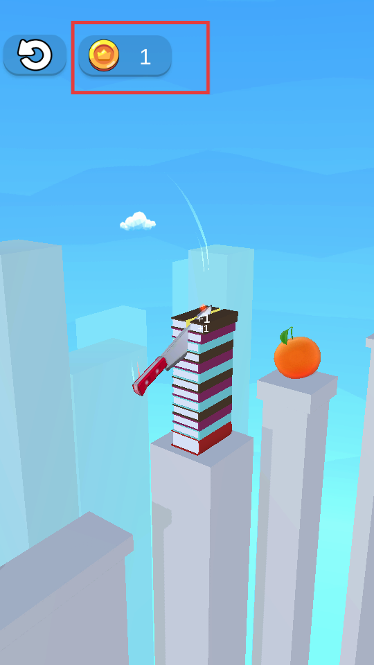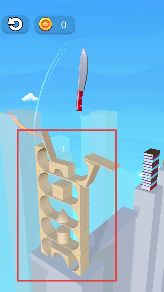 3、继续用刀具切割书籍堆等目标,积累金币,提升分数。