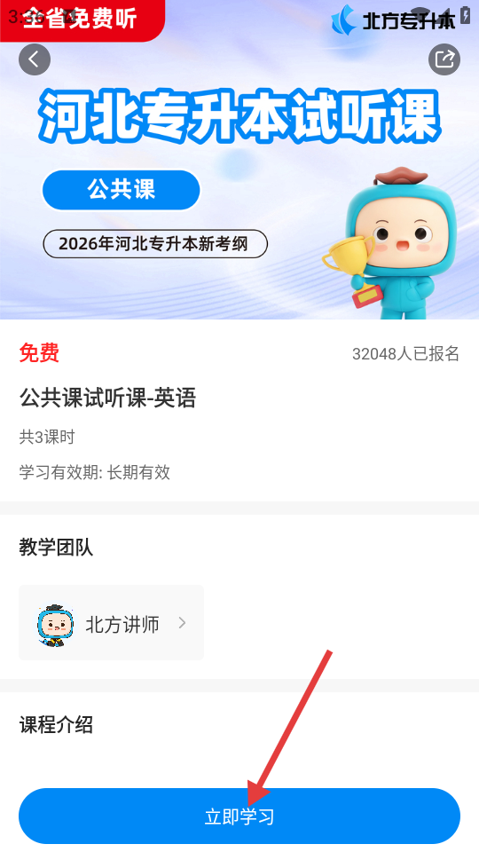 2、进入“公共课试听课-英语”详情页,点击【立即学习】。