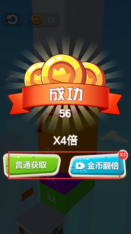 3、成功通关后,可选择【普通获取】或【金币翻倍】,领取相应的金币奖励。