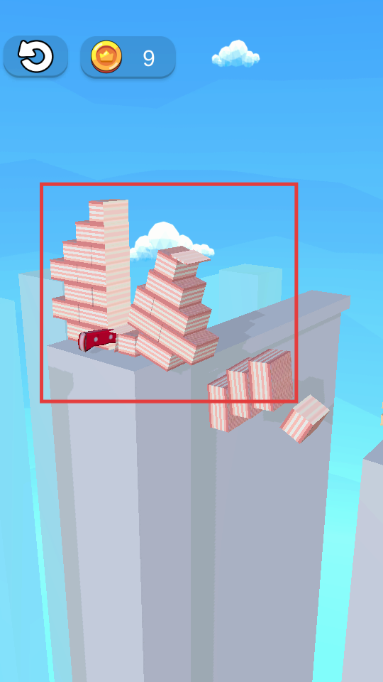 1、操控刀具,切割关卡中的堆叠结构,破坏目标以获取金币。