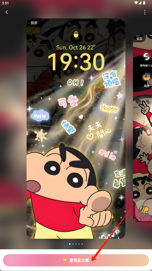 3、进入壁纸详情页,预览锁屏与桌面效果,确认后点击“使用此主题”按钮。