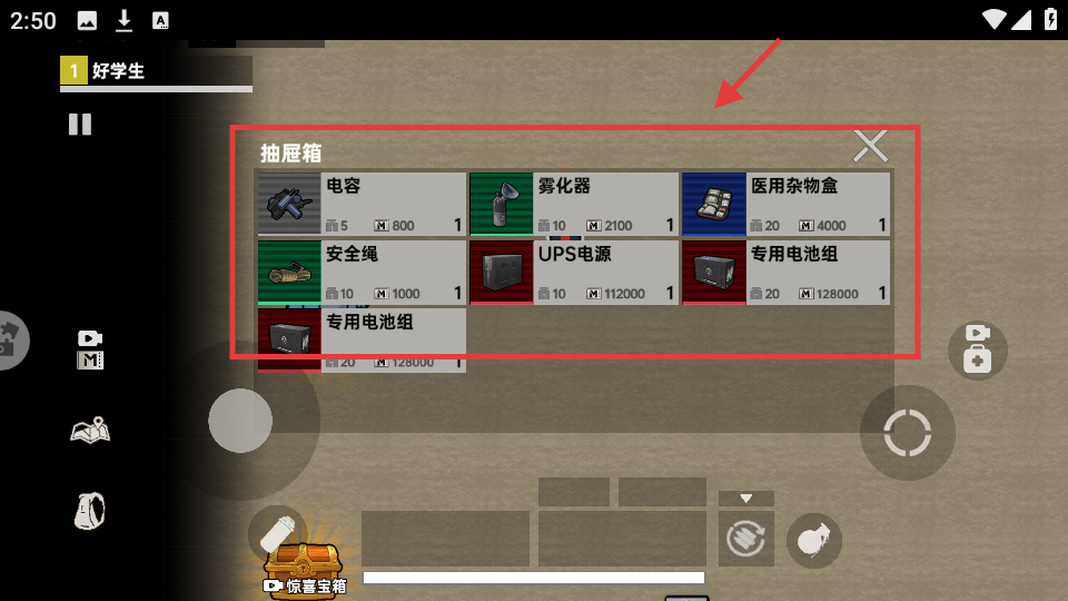 4、打开抽屉箱后,优先拾取【UPS电源】【专用电池组】等高价值物资,用于装备升级或任务道具。
