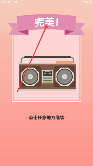 4、成功完成关卡任务后,界面显示【完美!】,点击任意地方,可继续挑战下一个关卡,开启新的冒险。