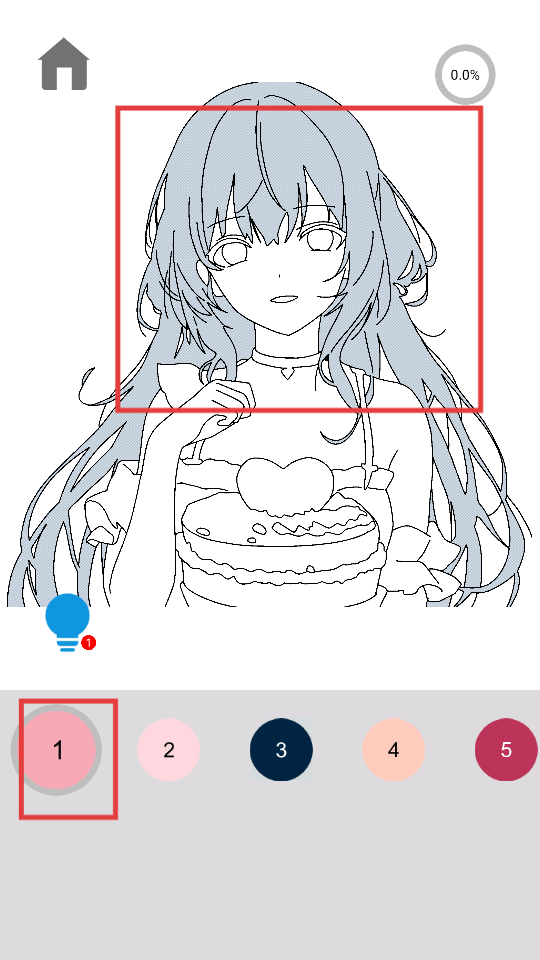 2、根据数字提示,选择对应数字【1】的颜色,为线稿中标记的区域涂色。