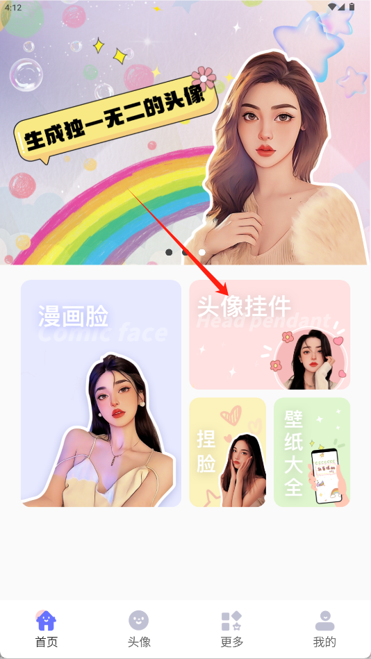 1、在软件首页点击“头像挂件”功能区域进入制作界面。