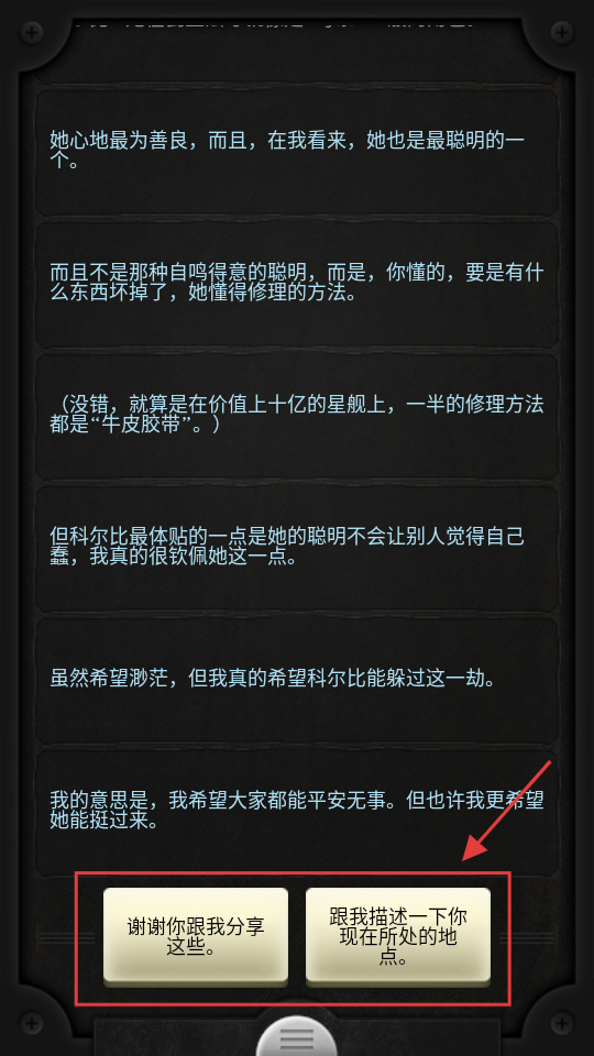 3、剧情对话后,选择【跟我描述一下你现在所处的地点】,获取泰勒位置信息。