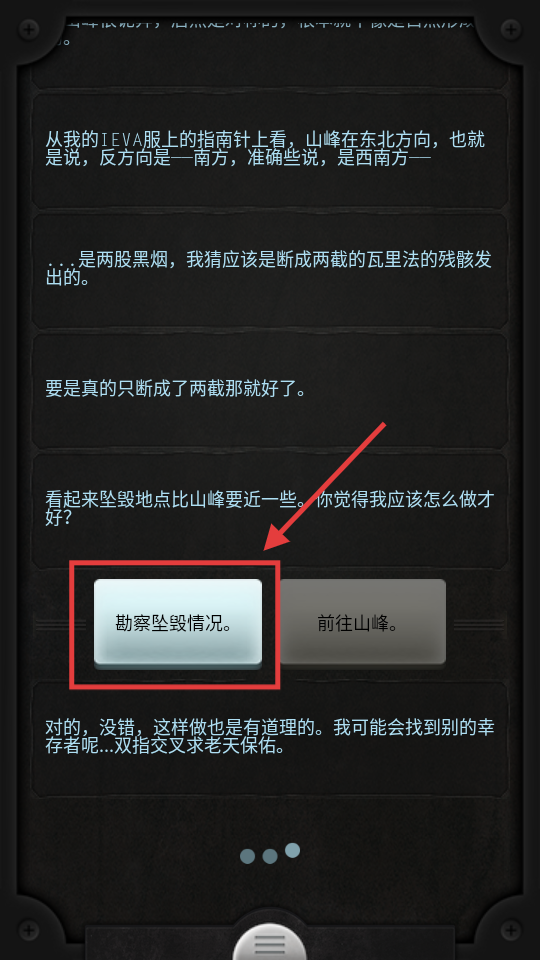 4、泰勒询问行动时,选择【勘察坠毁情况】,或可找到幸存者、关键资源。