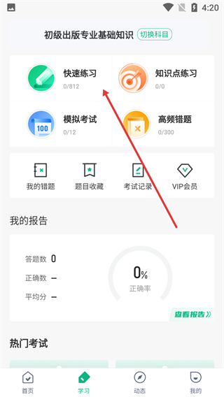 2、在学习页面,点击【快速练习】,进入答题页面。