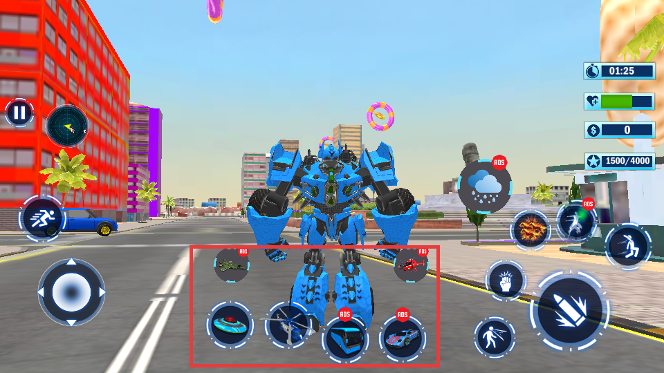 4、可选择下方的载具按钮,切换或使用不同载具,辅助机器人在城市中行动。