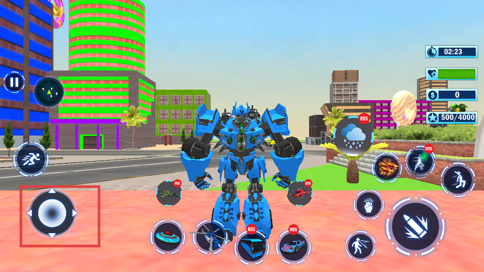 2、通过左侧操控盘,控制机器人在城市场景中移动。