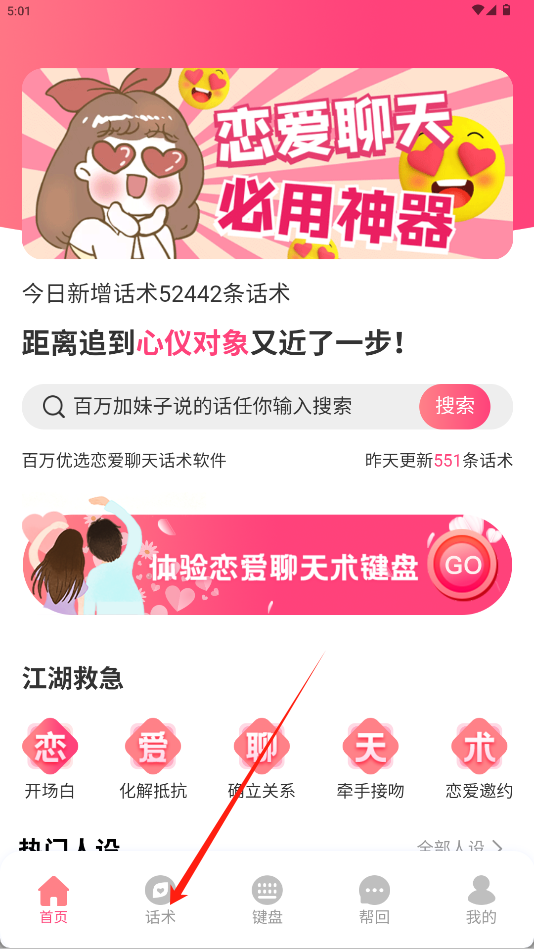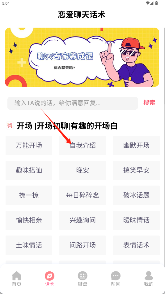 1、软件定位为恋爱社交场景的沟通辅助工具,核心价值在于提供结构化、情景化的聊天话术库。