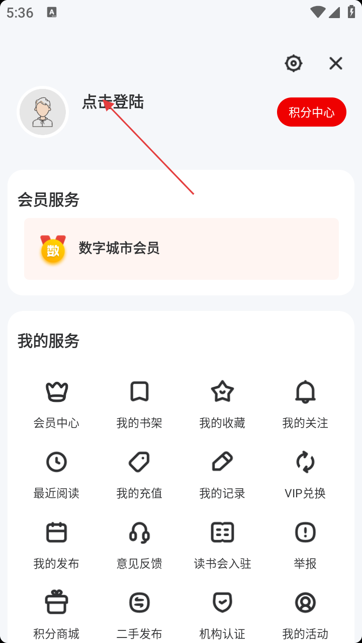 2、在个人页面,点击【点击登陆】选项,进入登录界面。