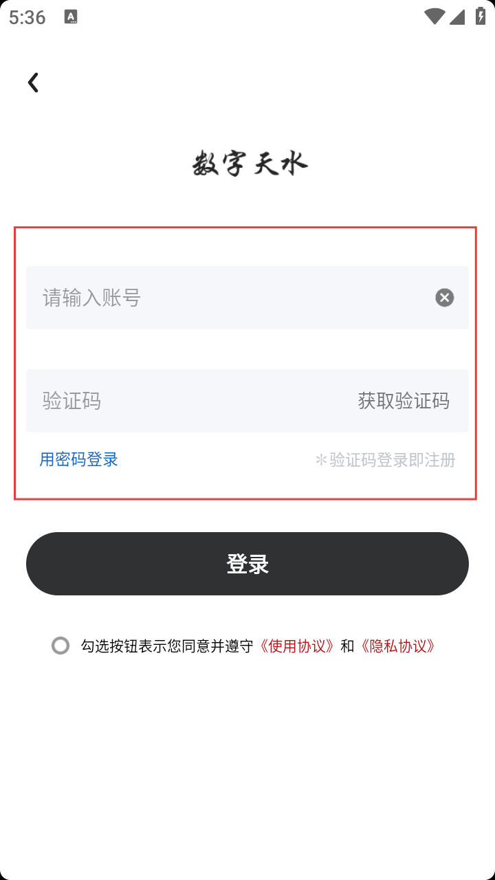 4、在验证码登录页面,输入账号,点击【获取验证码】,输入验证码后即可注册。