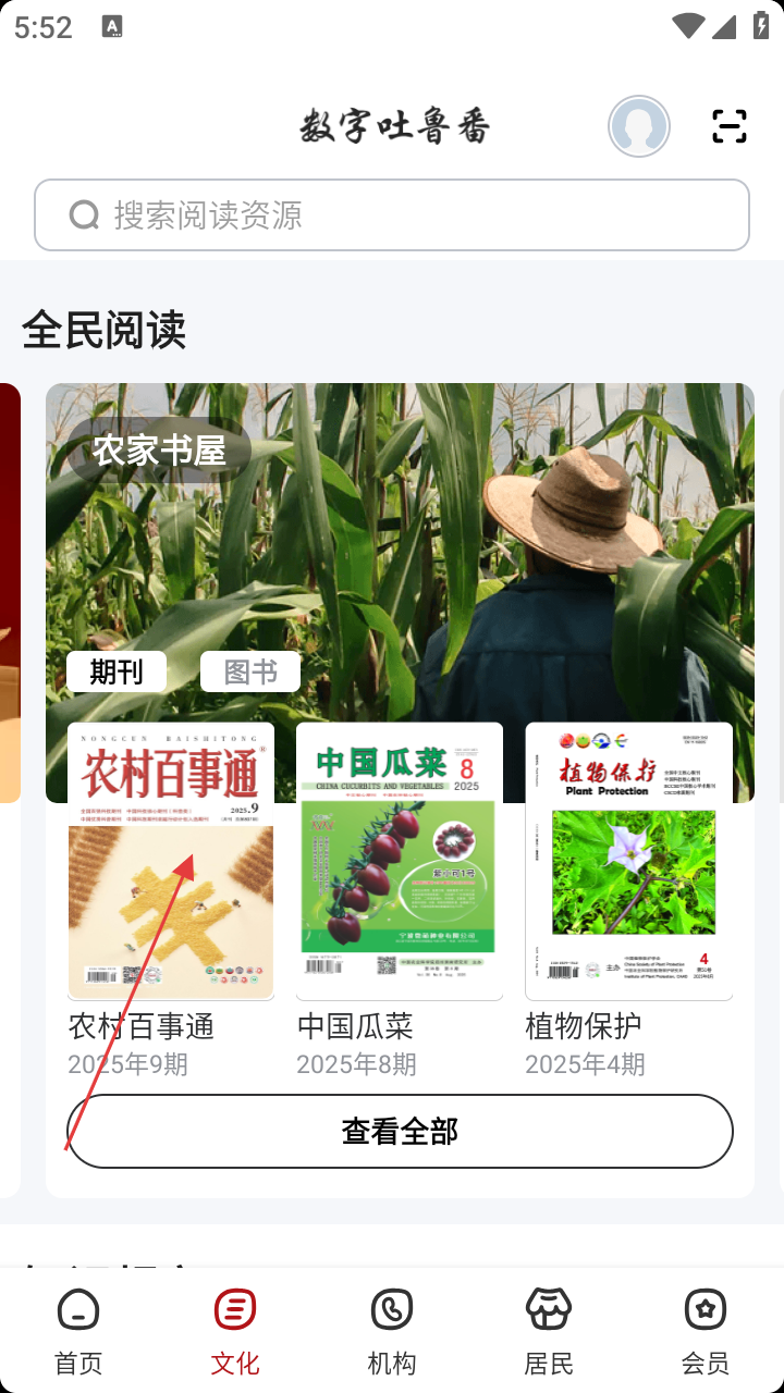 2、在文化板块页面,找到【农村百事通】期刊并点击,进入该期刊详情页。