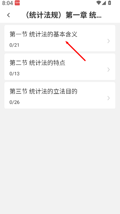 3、进入第一节“统计法的基本含义”,可进行针对性练习,掌握核心概念与基础理论内容。