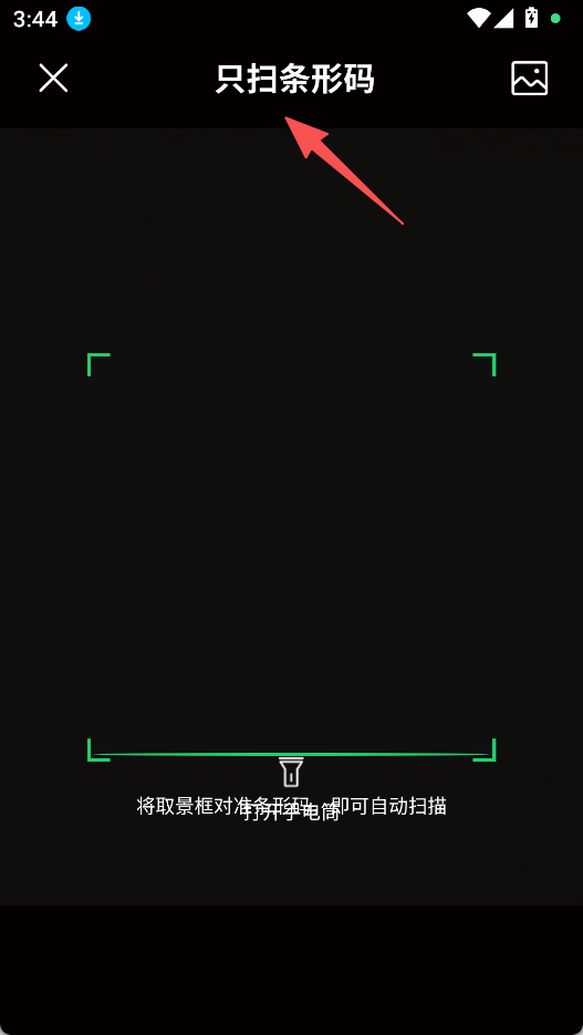 3、进入只扫条形码页面,将取景框对准条形码,自动扫描。