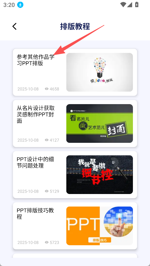 3、进入排版教程板块,选择教程,学习PPT排版等相关技巧。