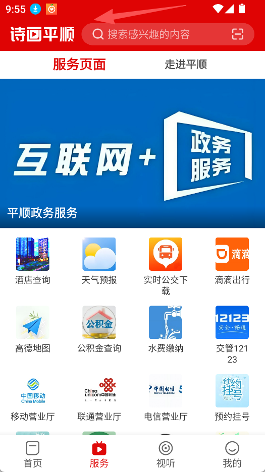 《诗画平顺》有精选、专题等板块,本地板块展示县内要闻等资讯。服务板块提供酒店查询、天气预报等多种政务及生活服务。视听板块可看电视、听广播,满足用户获取本地资讯、享受生活服务及视听娱乐的需求,是了解平顺的综合平台。