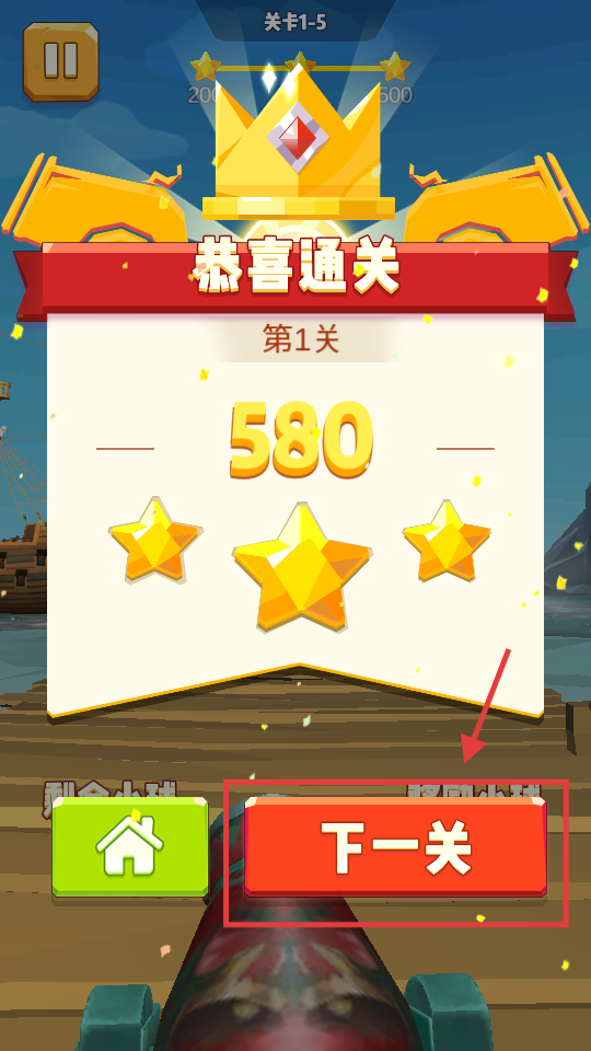 4、角色升级:完成任务后有分数计算和奖励球数,增加下一关的炮弹威力。