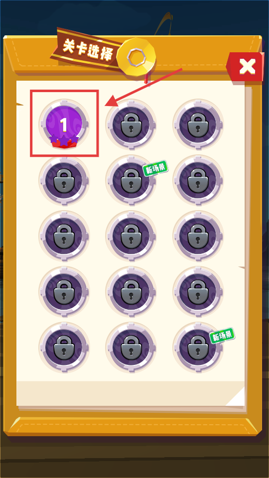1、进入游戏后点击【1】号关卡开始游戏,其他关卡需通关后方可解锁。