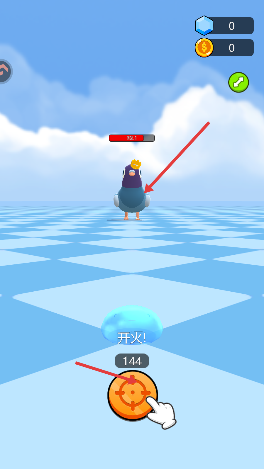 3、遇到目标角色时,点击下方开火按钮,攻击目标。