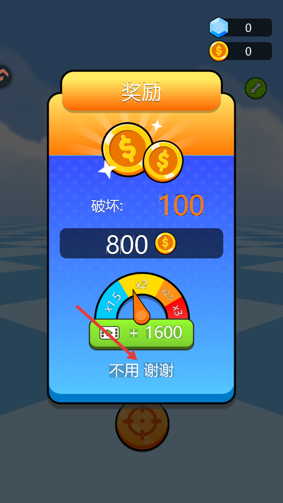 4、击败后获得奖励,可根据需求选择是否领取额外奖励,点击【不用谢谢】可关闭奖励界面。