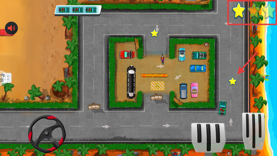 3、驾驶时留意【星星】收集,观察路况与障碍,确保车辆按路线精准停入车位。