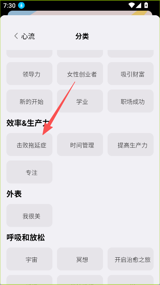 2、能查看效率与生产力相关内容,如击败拖延症、时间管理等分类下的内容,助力提升效率。
