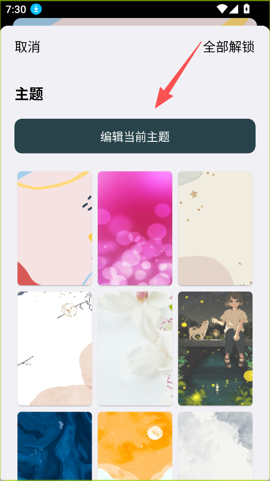 3、进入主题编辑页面,能选择喜欢的主题样式,打造个性化使用界面。